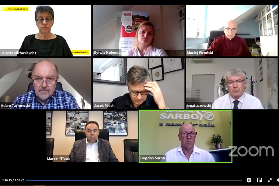 Uczestnicy debaty. „JAZDA Z OSOBĄ TOWARZYSZĄCĄ” - to tytuł debaty w cyklu DYSKUSJI NA RATUSZOWEJ [retransmisja - kliknij]. W dniu wczorajszym (24.6.2021) - w trybie on-line - spotkali się (wymieniamy w kolejności zaplanowanych wystąpień): prof. dr hab. inż. Marcin Ślęzak, dyrektor Instytutu Transportu Samochodowego; Maciej Wroński, prawnik; prezes Związku Pracodawców Transport i Logistyka Polska; prof. dr hab. Adam Tarnowski, psycholog transportu, Instytut Psychologii Uniwersytetu Mikołaja Kopernika w Toruniu; Sylwia Kolenda, instruktor nauki jazdy/ODZ Stanisław Paterek Koźmin Wlkp.; Bogdan Sarna, instruktor nauki jazdy, właściciel OSK „SARBO” w Warszawie; Jacek Mnich, ekspert brd, b. naczelnik WRD Komendy Wojewódzkiej Policji zs. w Radomiu; Tomasz Matuszewski, zastępca dyrektora WORD Warszawa, egzaminator, b. instruktor nauki jazdy oraz w roli moderatora Jolanta Michasiewicz, redaktor naczelna tygodnika PRAWO DROGOWE@NEWS.