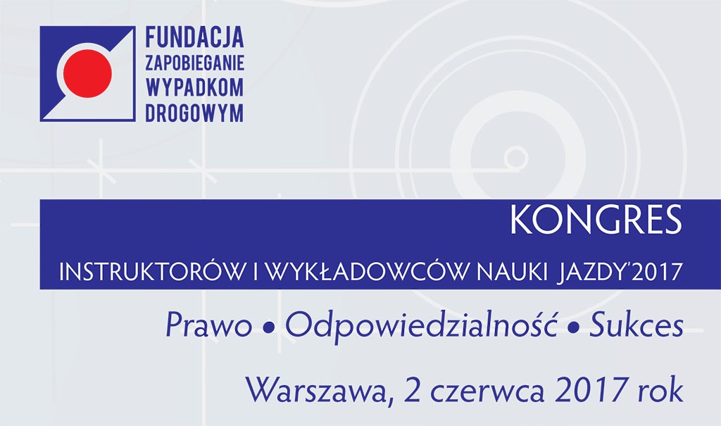 W Warszawie dnia 2 czerwca 2017 odbędzie się ogólnopolski Kongres Instruktorów i Wykładowców Nauki Jazdy’2017. Ta debata będzie odbywała się pod hasłem „PRAWO – ODPOWIEDZIALNOŚĆ – SUKCES”. Jej celem jest omówienie najistotniejszych problemów środowiska tj.: